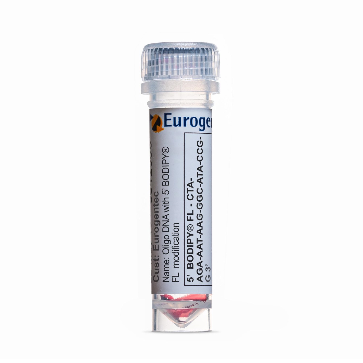 Bodipy® is an abbreviation for boron-dipyrromethene. Bodipy® is a family of Dyes characterized by a small Stokes shift, a narrow spectral profile and a high fluorescence. These fluorescent dyes are known for their environment-independent fluorescence quantum yields. They are conjugated post-synthesis to an amino-modified oligo as NHS Esters.