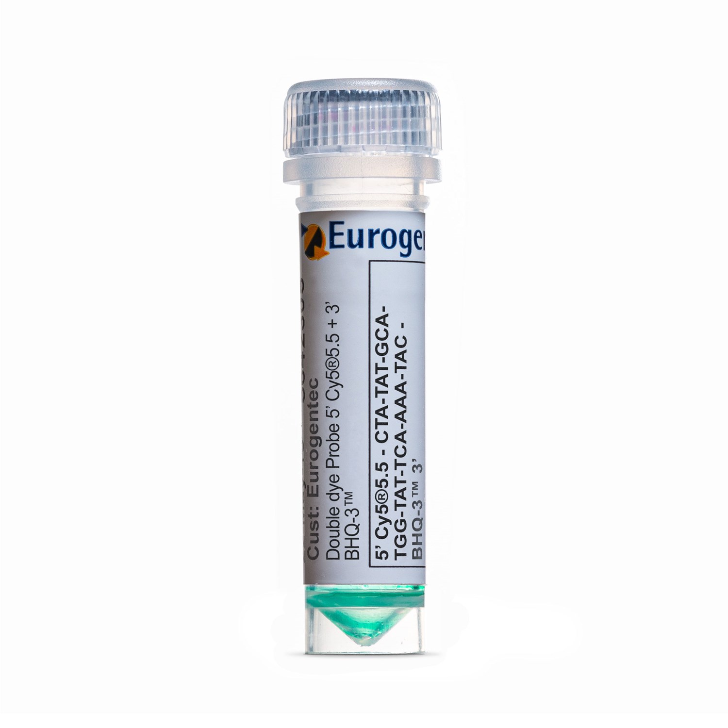 Eurogentec is a supplier of Double-Dye Oligonucleotide probes and offers the largest number of fluorescent reporters and quenchers. Double-Dye Oligonucleotide probes with various non-fluorescent quenchers and a variety of fluorescent dyes can be conveniently ordered using our web ordering interface. Furthermore, as many applications, like genotyping or gene expression profiling, are requiring small amounts of several different probes, Eurogentec has developed a high-throughput platform to produce high quality small scale Real-Time qPCR Double-Dye probes.