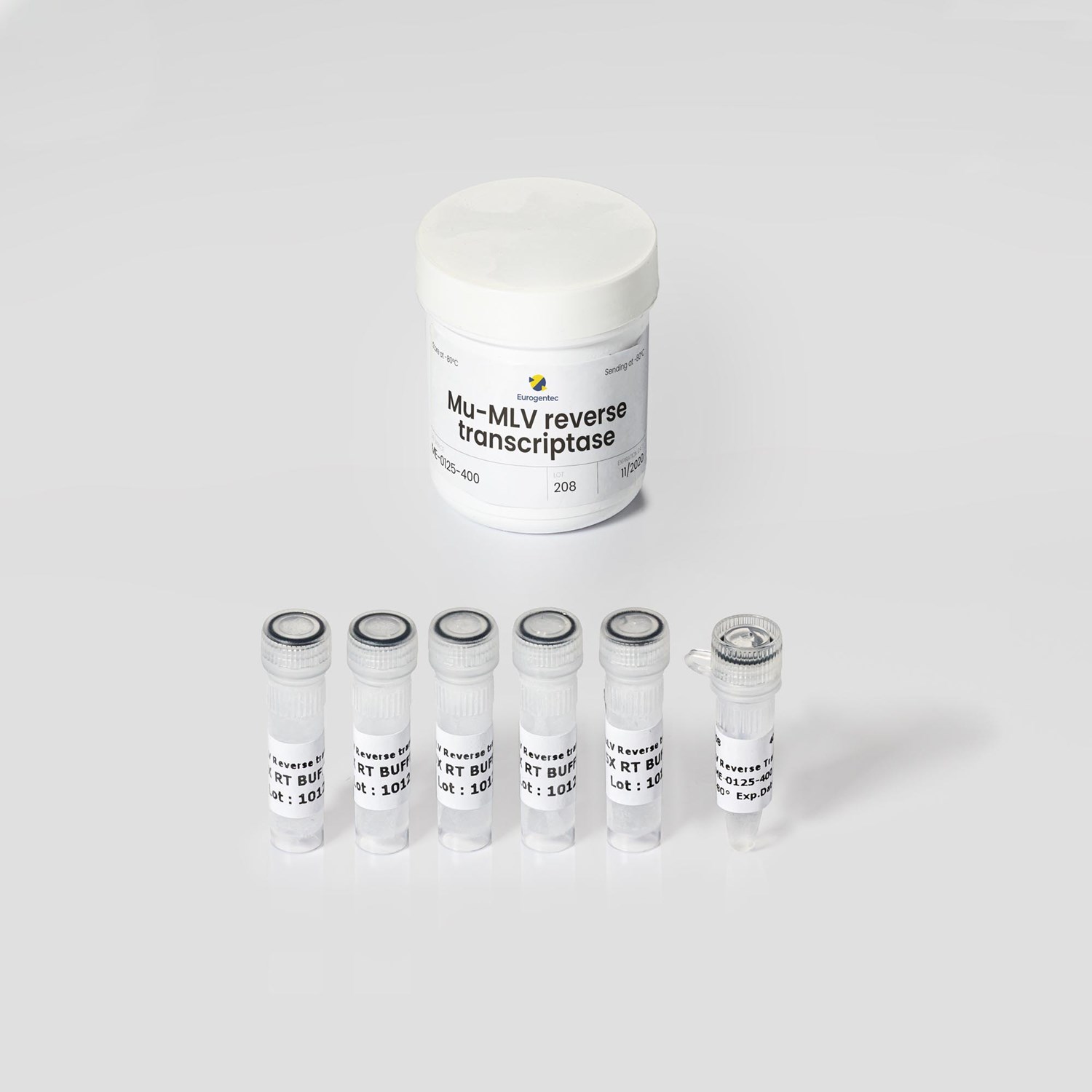 Mu-MLV (Moloney Murine Leukemia Virus) generates complementary DNA strand starting preferably from single-stranded RNA in the presence of a primer, or from RNA-DNA hybrid. Mu-MLV reverse transcriptase has lower RNase H activity than AMV reverse transcriptase, which is an advantage when synthesizing cDNAs from long mRNAs. Mu-MLV lacks the 3’ ’ 5’ exonuclease activity. It is recommended to use 10 U/µg RNA for optimum reverse transcription.