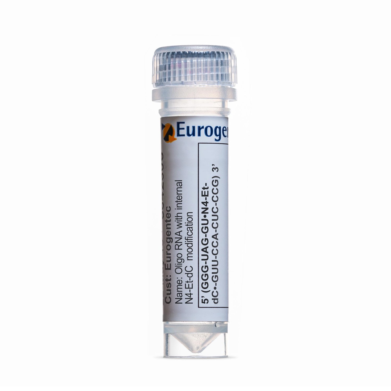 It was found that the N4-ethyl analogue (N4-Et-dC) hybridises specifically to natural dG but the stability of the base pair is reduced to about the level of an AT base pair. In a series of probes whose GC content ranged from 0 to 100%, the range in Tm values when N4-Et-dC was used was only 7°C; when dC was used, that range was 39°C. The N4-ethyl analog (N4-EtdC) could be used to normalise the stability of the GC and AT base pairs, crucial in any technique that involves hybridisation of multiple sequences simultaneously, as in DNA chip and reverse hybridisation technologies.