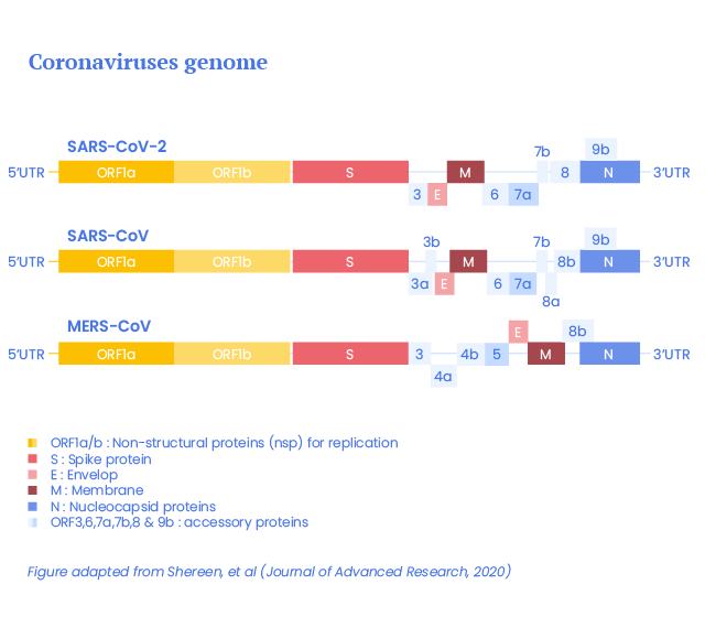 SARS-CoV-2 genome is a positive-sense single-stranded RNA of 29.9 kb.