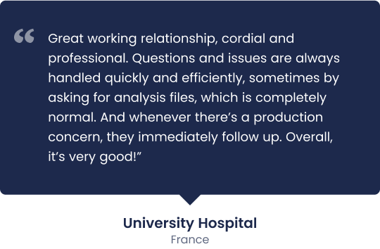 Customers validate our reagents in their assays prior production of a test batch, with the full support of our technical experts.