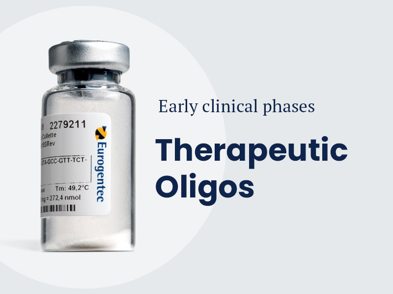 Combining over 30 years of expertise in oligonucleotide synthesis to 20 years of biopharmaceutical GMP manufacturing, we now offer GMP therapeutic oligonucleotides manufacturing for early clinical phases.
