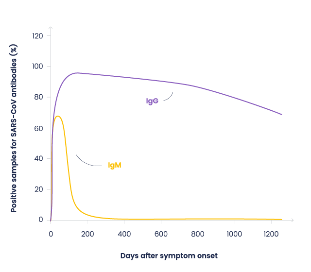 Figure : Antibodies evolution after SARS-CoV-1 infection. Based on Wu, et al. data (4)